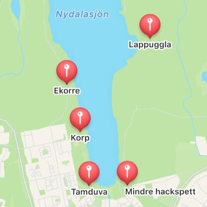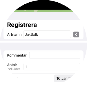 Du kan antingen se dina observationer på en karta eller i en lista.När du registrerar en art kan du antingen använda telefonens position eller markera en position på kartan.