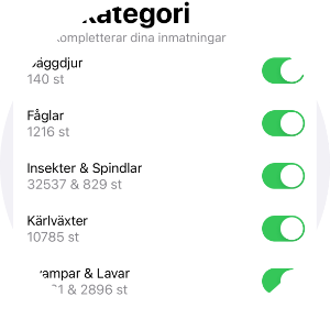 Gå in i Inställningar och bevilja appen tillstånd att använda GPS:en.Problem: Jag får upp alldeles för många förslag på arter.